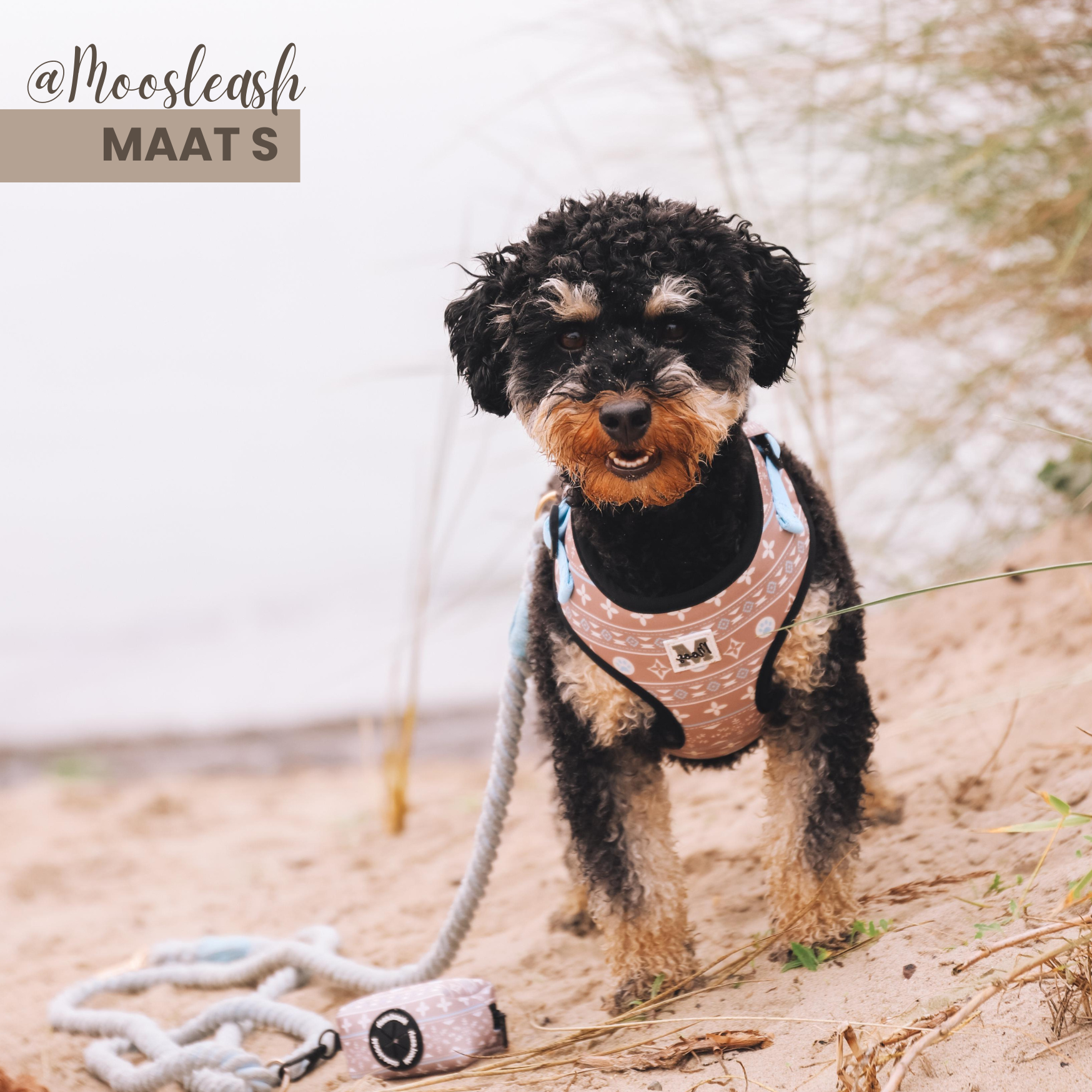 Een harnas uit onze eigen collectie van MoosLeash. Ziet er chic en luxueus uit bij uw hond, terwijl comfort nog altijd voorop staat. Dit dit hondentuig is een Y-tuig gemaakt met comfortabel, sneldrogend neopreen met ademend mesh.